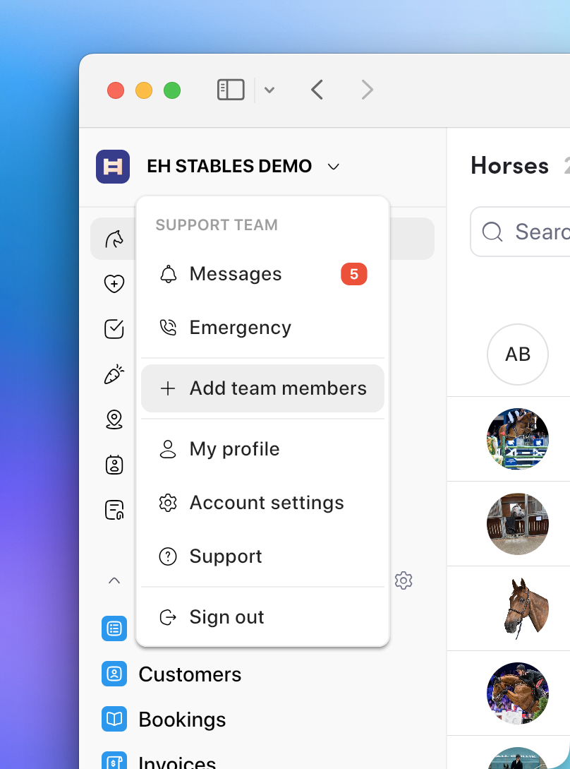 All users, except account owners, should be added to a User Group. A user group can be given access to parts of Equihub, Stable, Finance, Breeding, Sales and Settings. Withing each of these permissions can be granted. For example, within Stable you can specify if a group can access Horses, Tasks, Health, ... This allows fine-grained access control for you and your team.